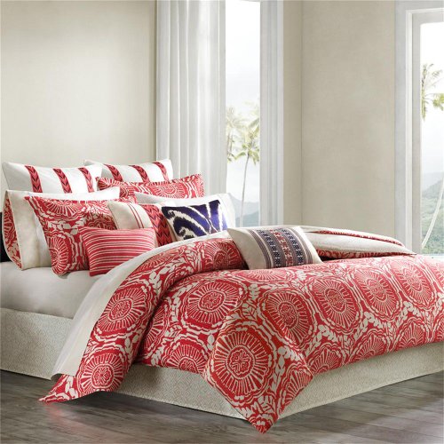 In a bright coral red, Echo's Cozumel bedding collection is a great way to brighten up any room in your home. The exotic medallion pattern gives a tribal feel to the comforter and shams.