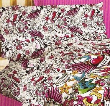 Read more Tattoo White with Skulls Microfiber Twin Sheet Set