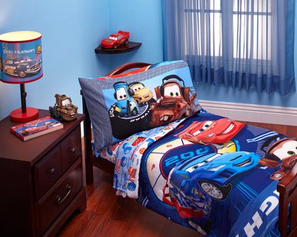 Rev your engines! McQueen and his friends are off and racing in the Disney Cars Rev Max four-piece toddler bedding set.